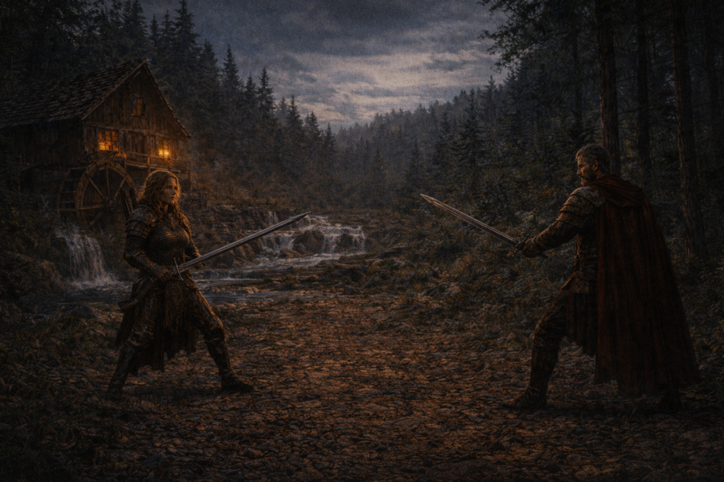 La mercenaire se lança à sa poursuite sous les sapins noirs, et bientôt la fuite de l’enfant la conduisit jusque dans un vallon oublié où des meuniers vivaient tranquillement. Là, dans la grande maison du moulin, avec ses poutres blanchies de farine et le grondement continuel de la roue, elle la rejoignit enfin.